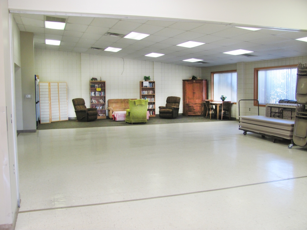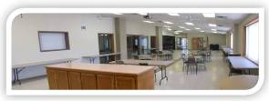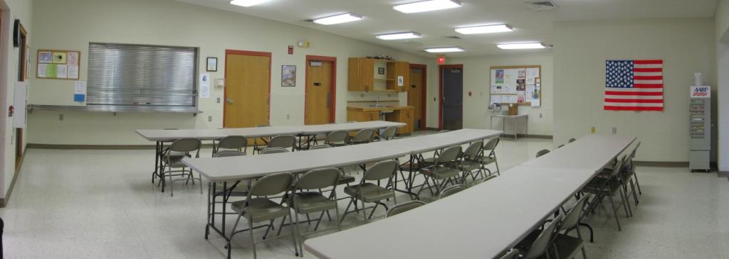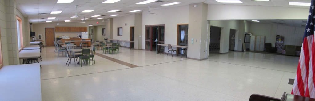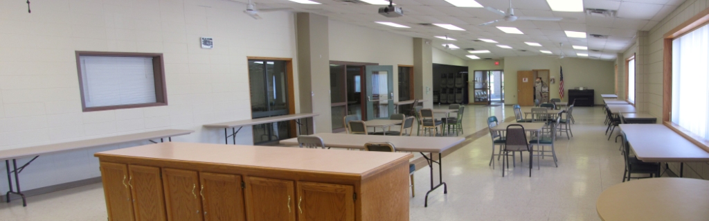 Additionally, senior meals are prepared and delivered from the attached kitchen facility (not part of the rental facilities). Senior Lunches are also served in this part of the facility Monday through Friday. Otherwise this area is available as a meeting space.